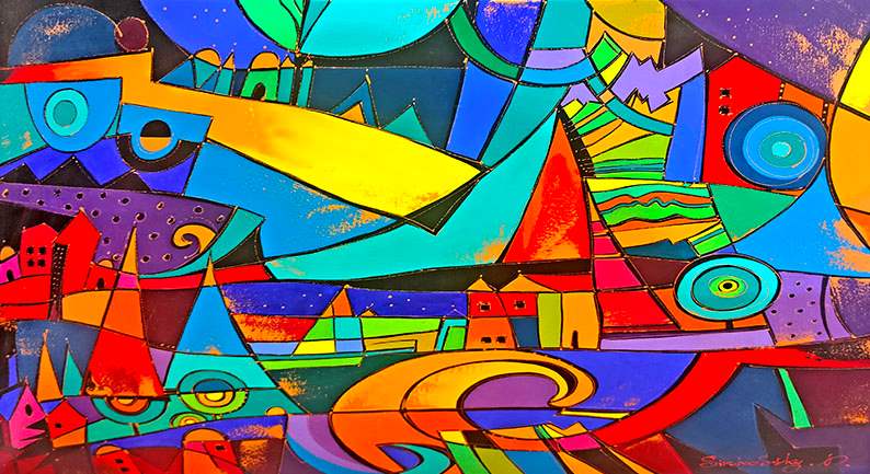 Sinkovsky’s painting style is largely inspired by abstract art and modern design thanks to her background in architecture. In particular, her sailboat series draws from Expressionist, Baroque and Cubist art movements as well as architectural movements like Constructivism and Minimalism.