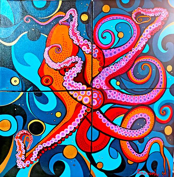 When creating art, Sinkovsky boldly applies acrylic on canvas without a prior sketch or drawing. Instead, she pictures what she is going to paint and imagines the place where the painting will be hung, which in turn inspires the color palette and size of the artwork.