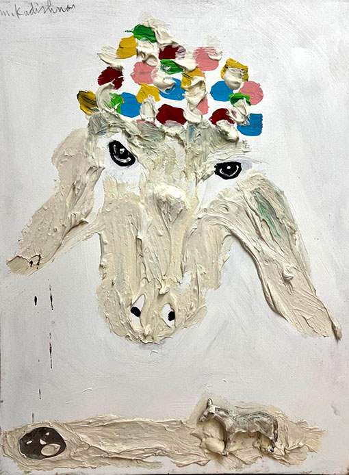 Menashe Kadishman ביוגרפיה מנשה קדישמן נולד בתל אביב לבלהה ובן-ציון קדישמן. למרות הרוח החלוצית של המשפחה, הייתה בבית אווירה תומכת לעיסוק באמנות. אביו נהג ליצור, כתחביב, חיתוכי אלומיניום בנושאי חלוצים. בנעוריו למד קדישמן ציור אצל אהרון אבני. לאחר מכן למד פיסול אצל משה שטרנשוס. במקביל היה קדישמן פעיל בתנועת הנוער "גורדוניה" (התנועה המאוחדת). בשנת 1950 נפטר אביו. קדישמן סיים את לימודיו התיכוניים בבית הספר המקצועי ע"ש מקס פיין בתל אביב.[1] עם גיוסו לצה"ל הצטרף ליחידת הנח"ל הראשונה, שהוקמה באותה עת. קדישמן הוצב בקיבוץ מעיין ברוך שבאצבע הגליל. הוא היה רועה צאן, דבר שהשפיע רבות על יצירותיו. זכרונותיו כרועה מתועדים וערוכים בדייקנות ברישומי פחם ועיפרון. התוכן בדרך כלל עוסק בכבשים. הכבשים צוירו בעיקר בסביבת גבול ישראל, גדרות תיל. מה שהשפיע עליו ביותר זו העובדה שגם הכבשים למעשה מוגבלות בגבול בינלאומי. בשנים 1947–1950 למד פיסול אצל משה שטרנשוס, לאחר מכן אצל רודי להמן. היה חבר קיבוץ יזרעאל מספר שנים, אולם נאלץ לעזוב כי הקיבוץ סירב לממן את לימודיו האקדמיים. בשנים 1959–1960 בסט. מרטינ''''ס סקול אוף ארט (אנ'''') אצל אנתוני קארו (אנ'''') (למד שם יחד עם בוקי שוורץ), ובסלייד סקול; שני המוסדות בלונדון. בשנות ה-60 חי ויצר בלונדון ואף החל להצליח שם. בשנת 1968 ייצג את ישראל בדוקומנטה בקאסל, גרמניה, ובשנת 1978 הציג בביאנאלה של ונציה 18 כבשים שעל גבן צבע כחול בשם "פרויקט הכבשים: הטבע כאמנות והאמנות כטבע". מיצג זה שוחזר במוזיאון תל אביב לאמנות בתערוכה של יצירותיו שנפתחה בדצמבר 2005 ונקראה "צייר לי כבשה". התפרסם גם בציורי דיוקנאות הכבשים הצבעוניים שלו, אותם החל לצייר בשנת 1995; מאז יצר אלפי דיוקנאות מסדרה זו. בפסליו הוא נהג להשתמש בברזל ובחומרים נוספים כדי ליצור אמנות סביבתית אפית. בתחילתה, בשנות ה-60, נהג לפסל בסגנון מופשט על ידי שימוש בצורות גאומטריות חדות, ובהמשך פיסל גם פסלים פחות מופשטים, בהם "עקדת יצחק", פסל רחוב עשוי פלדת קורטן שנמצא בתל אביב מול מוזיאון תל אביב ובניין בית המשפט. פסל הרחוב שלו "התרוממות" עשוי פלדה וגובהו 15 מטר. הפסל נמצא בסמוך לבית תיאטרון "הבימה" בתל אביב, והוא סימן היכר בולט של סביבתו. בשנת תשנ"ה (1995) נבחר לחתן פרס ישראל בתחום הפיסול. בשנת 2005 הוקרן בפסטיבל ירושלים הסרט "הכבשה הכחולה" (בבימוי דני דותן ודליה מבורך) המתעד את חייו ויצירתו. בשנים 1976–1977 שיחק בסרטים בבימויו של זאב רווח "רק היום" ו"הגונב מגנב פטור" בתפקיד המהרישי. קדישמן היה גרוש ואב לשניים. בנו, בן, הוא צייר. בתו השחקנית מאיה קדישמן הייתה נשואה לאמן ערן שקין. מנשה קדישמן נפטר ב-8 במאי 2015, בגיל 82, ונטמן בבית הקברות קריית שאול.[2] Biography Menashe Kadishman was born in Tel Aviv to Belha and Ben-Zion Kadishman. Despite the pioneering spirit of the family, there was a supportive atmosphere in the house for practicing art. His father used to create, as a hobby, aluminum cutouts on pioneer themes. In his youth Kadishman studied painting with Aharon Avni . After that he studied sculpture with Moshe Sternshus . At the same time, Kadishman was active in the youth movement " Gordonia " ( the united movement ). In 1950 his father died. Kadishman completed his high school studies at the Max Payne Vocational School in Tel Aviv.[1]Upon his enlistment in the IDF , he joined the first Nahal unit , which was established at that time. Kadishman was stationed in Kibbutz Ma''''ayan Baruch Shev HaGalil . He was a shepherd , something that greatly influenced his works. His memories as a shepherd are recorded and edited with precision in charcoal and pencil drawings . The content usually deals with sheep . The sheep were drawn mainly around the Israeli border, barbed wire fences . What affected him the most is the fact that the sheep are actually also confined by an international border. In the years 1947-1950 he studied sculpture with Moshe Sternshus , then with Rudi Lehmann . He was a member of Kibbutz Jezreel for several years, but had to leave because the kibbutz refused to finance his academic studies. In the years 1959-1960 in St. Martin''''s School of Art ( N ) with Anthony Caro ( N ) (studied there together with Bucky Schwartz ), and at the Slade School ; Both institutions are in London . In the 60s he lived and worked in London and even began to succeed there. In 1968 he represented Israel in a documentary in Kassel , Germany , and in 1978 he presented 18 blue-backed sheep at the Venice Biennale under the name " The Sheep Project: Nature as Art and Art as Nature ". This representation was reproduced in the Tel Av
